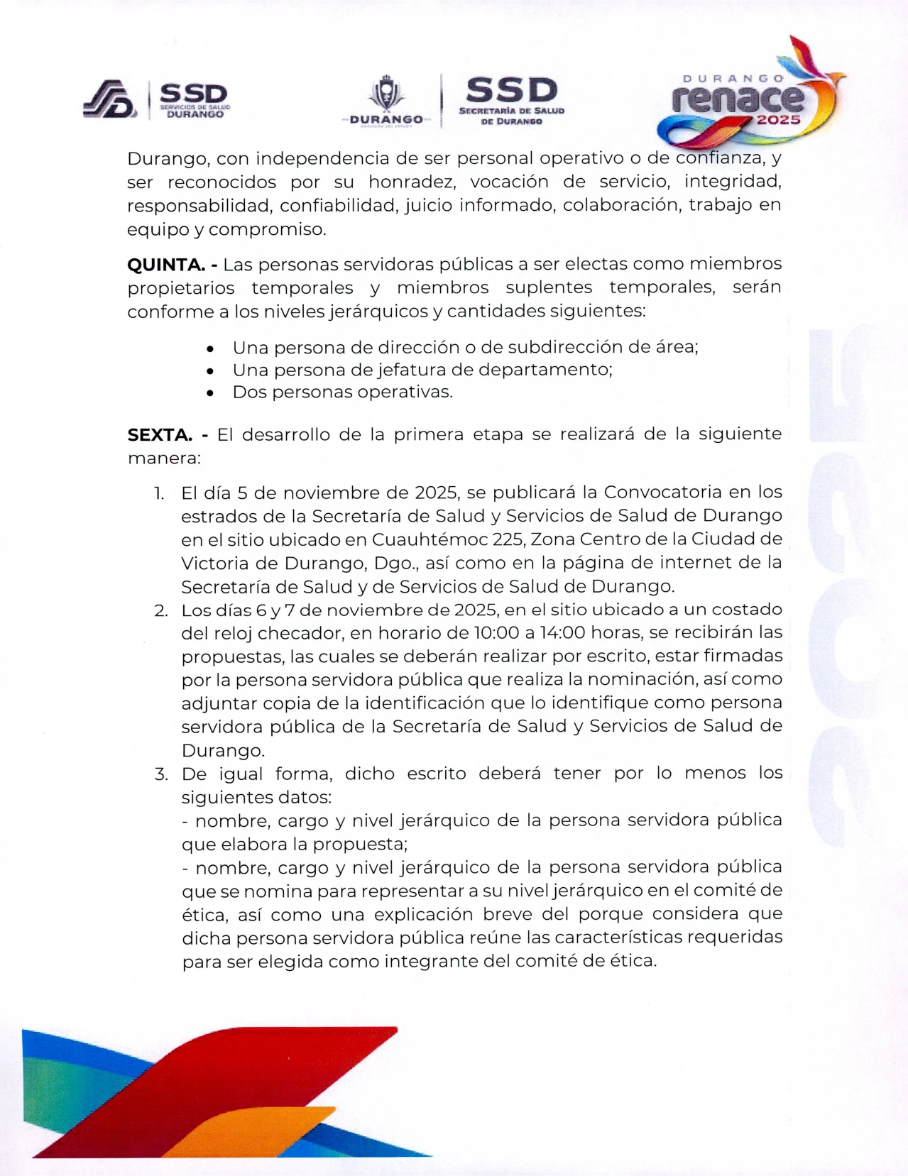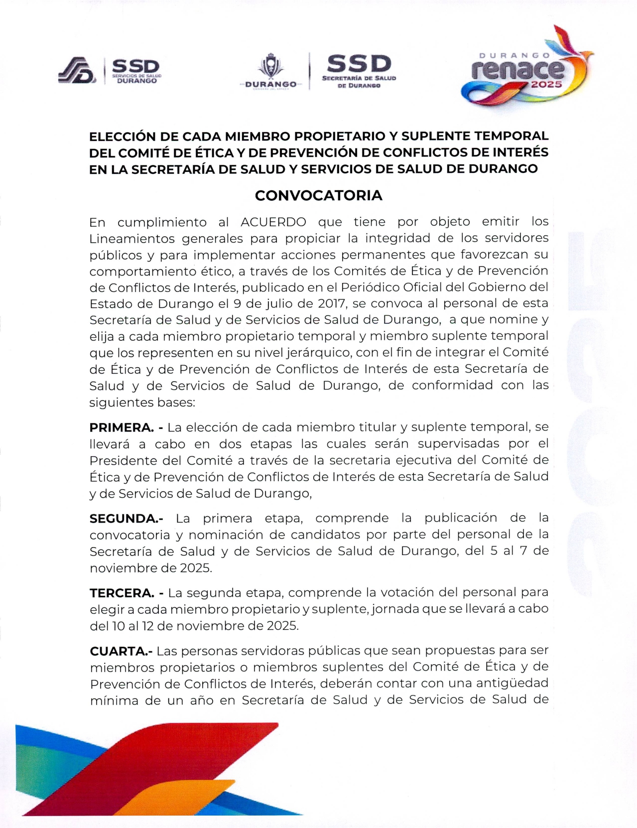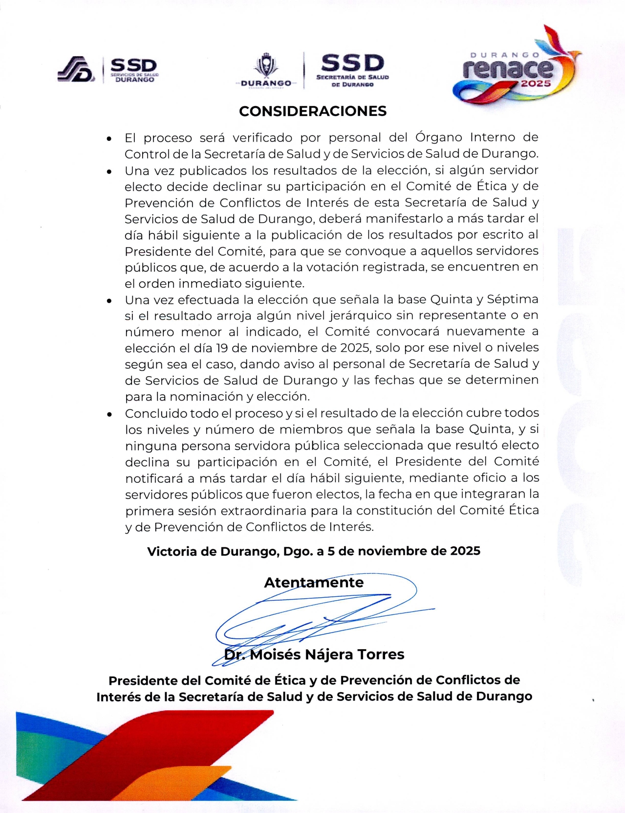 Secretaría de Salud y de Servicios de Salud de Durango, a que nomine y