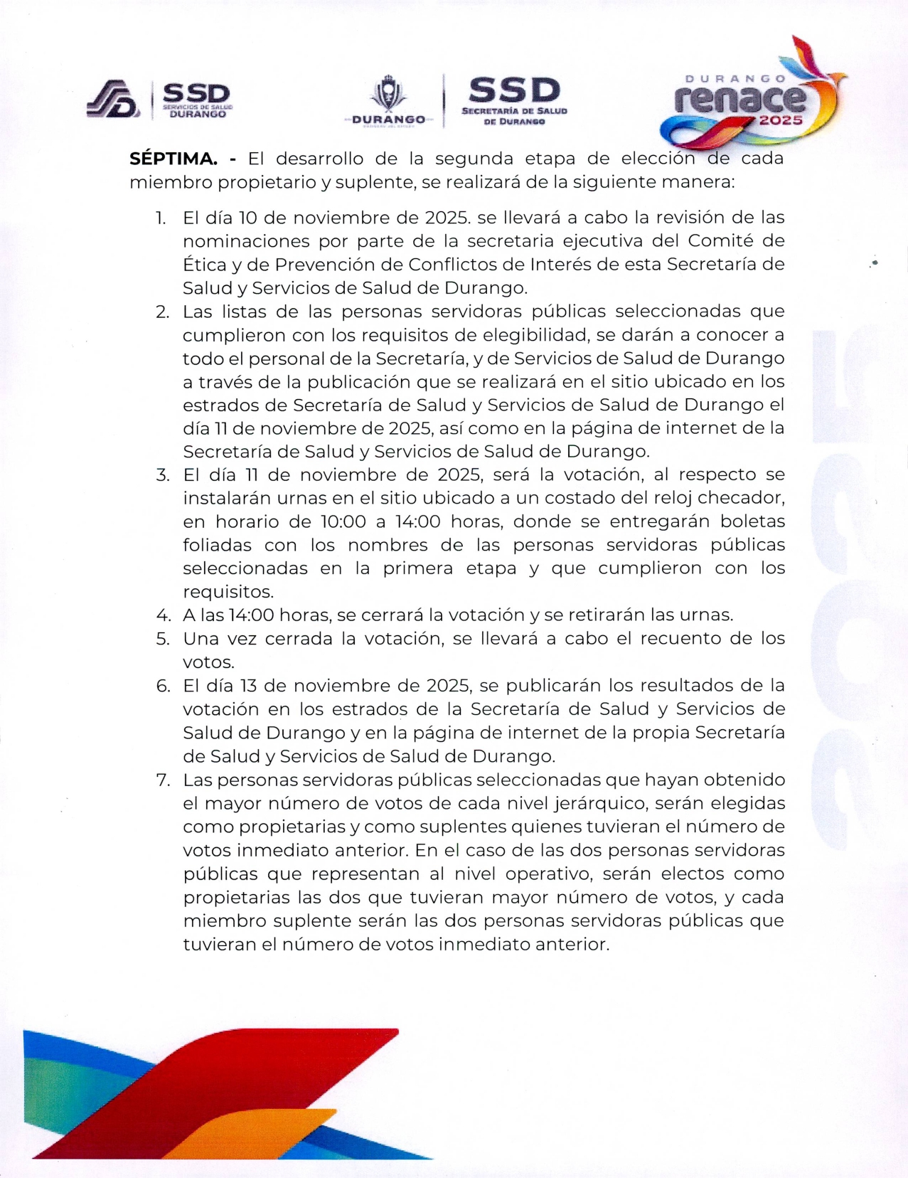Estado de Durango el 9 de julio de 2017, se convoca al personal de esta