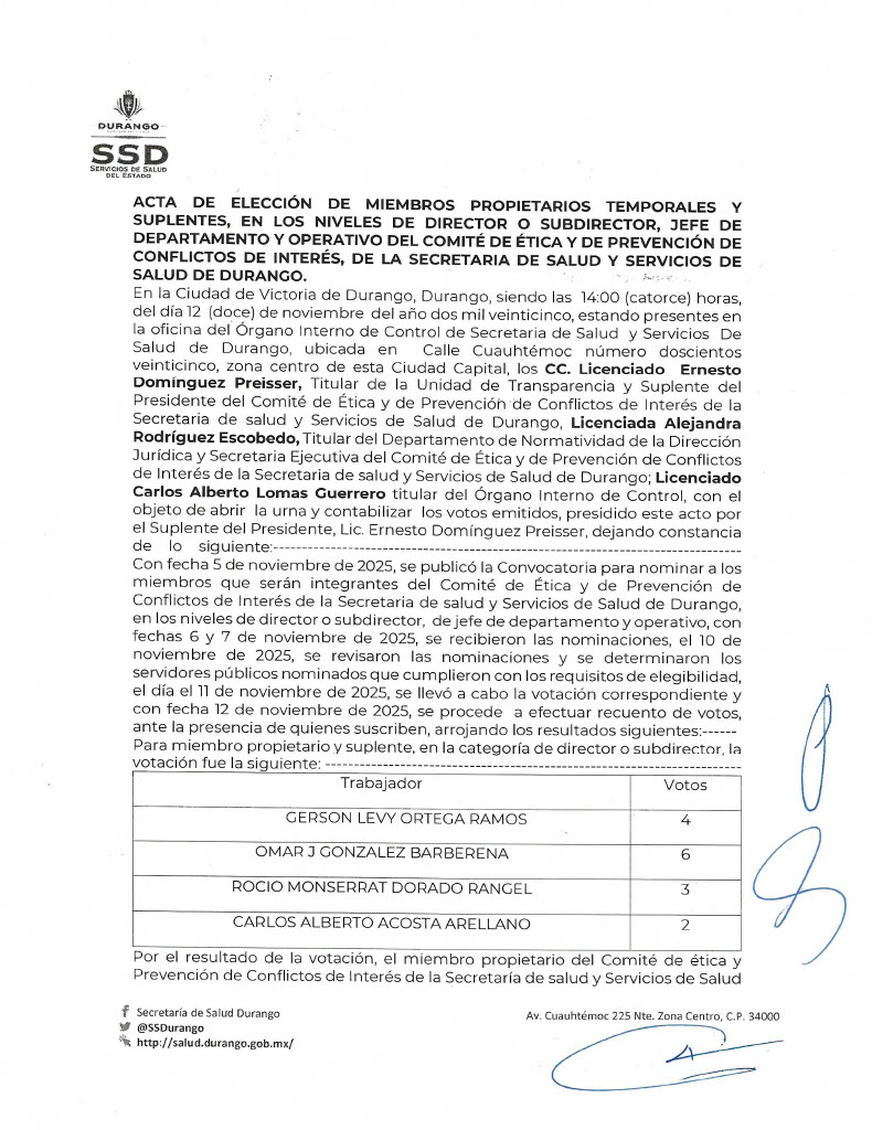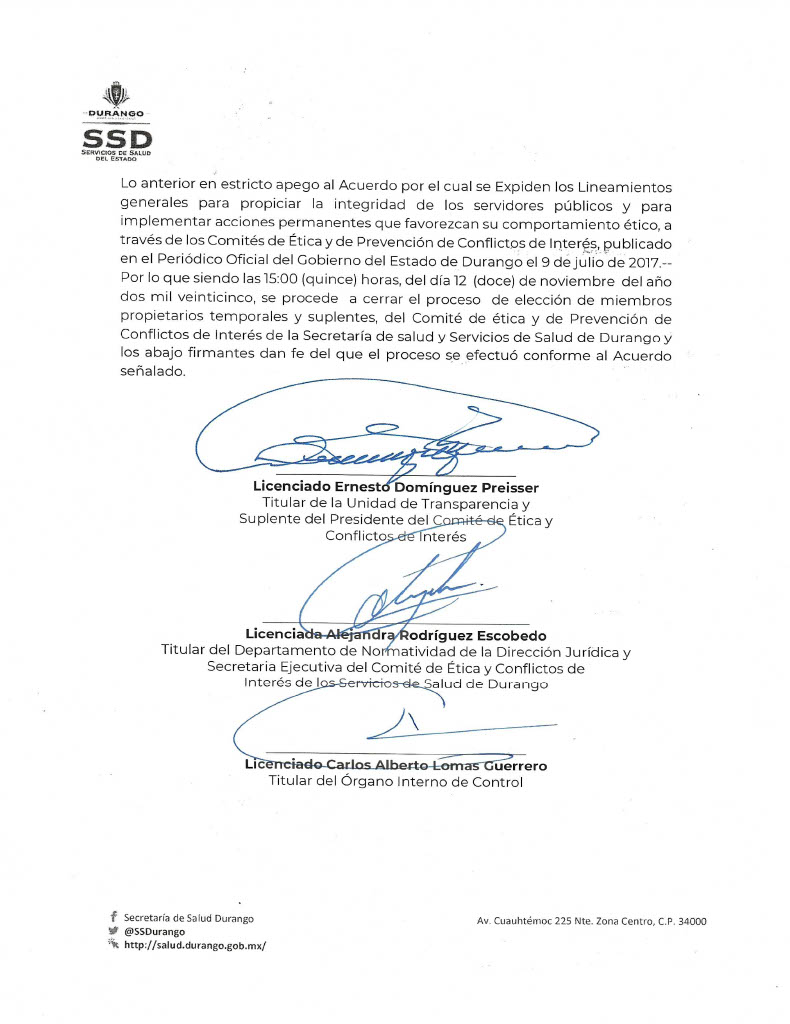 EN LA SECRETARIA DE SALUD Y SERVICIOS DE SALUD DE DURANGO